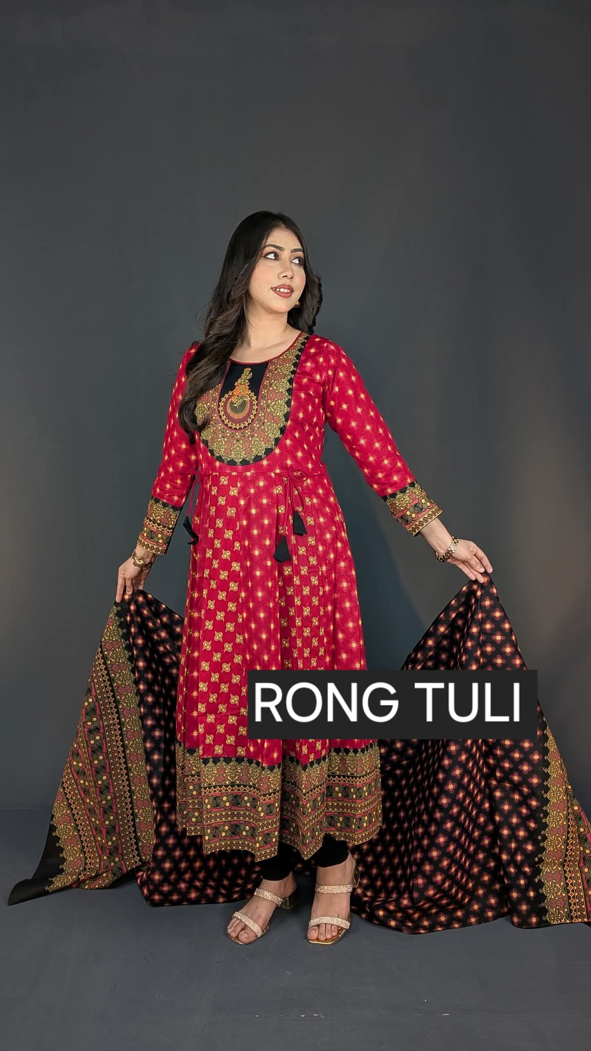এই টু পিস সেটটি ডিজাইন করা হয়েছে আধুনিক ও ট্র্যাডিশনাল স্টাইলের সুন্দর মিশেলে। গাঢ় লাল বেসের উপর গোল্ডেন মোটিফ প্রিন্ট এবং নেকলাইনে রিচ এমব্রয়ডারি আপনার লুকে এনে দেবে এলিগ্যান্ট ফিনিশ। সাথে রয়েছে ম্যাচিং কালো প্রিন্টেড বটম, যা পুরো আউটফিটকে করে তুলেছে সম্পূর্ণ ও স্টাইলিশ। কাপড়টি নরম ও শ্বাসপ্রশ্বাসযোগ্য হওয়ায় সারাদিন আরামে পরা যায়—ফেস্টিভাল, গেট-টুগেদার বা ডেইলি ইউজ—সব ক্ষেত্রেই মানানসই।